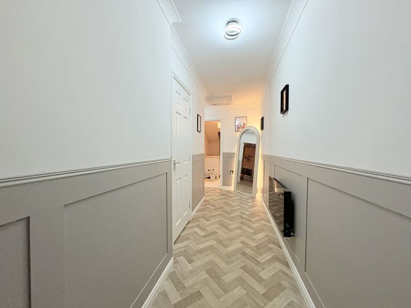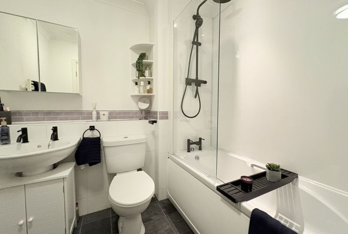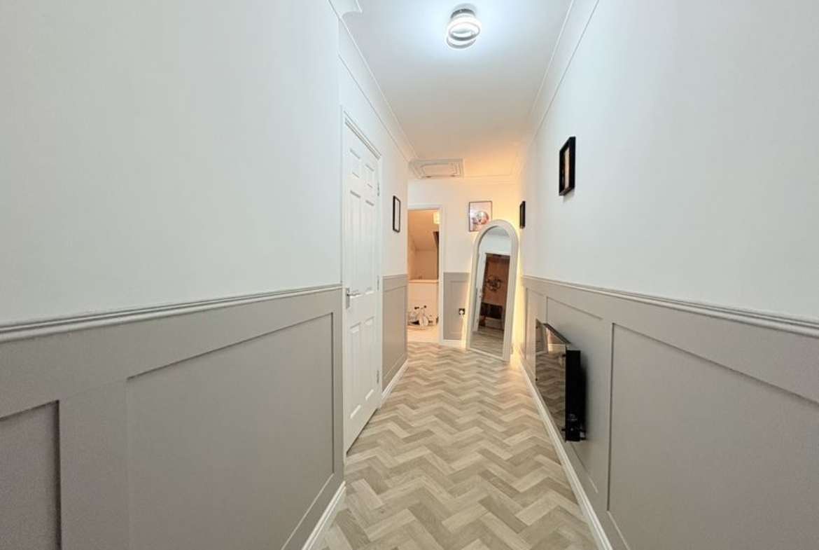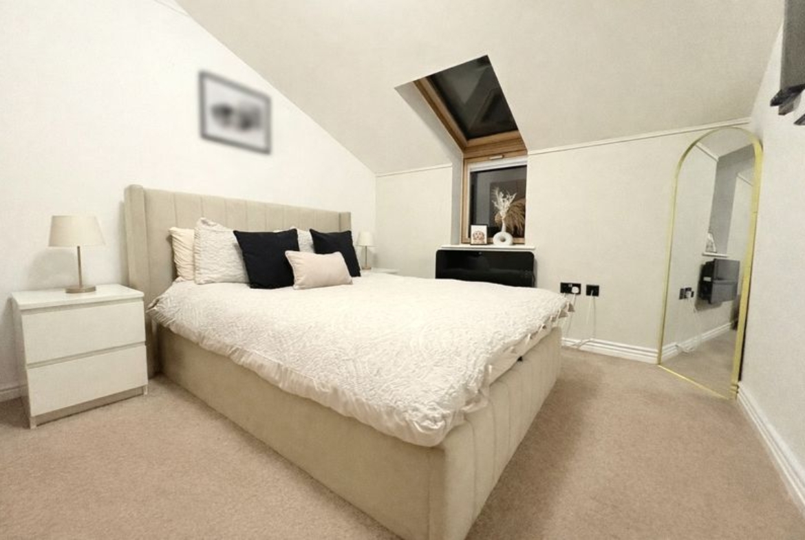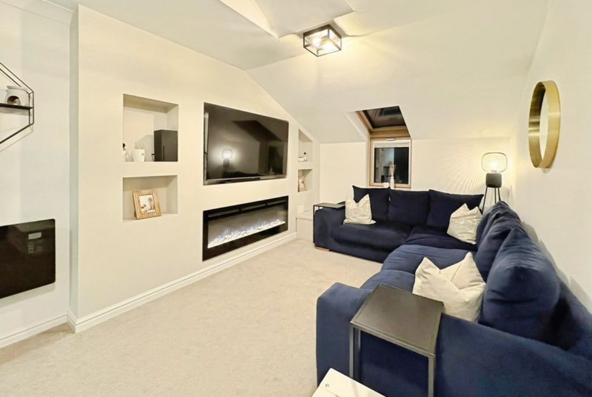 Ideally positioned within easy reach of local shops, cafés and excellent transport links including the Metro, this beautifully presented top floor two bedroom apartment offers thoughtfully designed living space, finished to an excellent standard throughout. The location provides the perfect balance of convenience and lifestyle, with everyday amenities just moments away. The heart of the apartment is the impressive open-plan kitchen/lounge/diner, a superb space designed with modern living in mind. The lounge area is centred around a sleek built-in media wall incorporating a contemporary electric fire and recessed display shelving, creating a stylish focal point and a cosy setting for relaxing evenings. The layout flows seamlessly into the dining area and kitchen, making it equally suited to entertaining guests or enjoying quiet nights at home. The kitchen features striking dark cabinetry complemented by modern work surfaces and integrated appliances, along with a breakfast bar seating area for informal dining. Well-considered lighting and ceiling detailing elevate the overall feel, while the décor throughout enhances the sense of space and light. The principal bedroom is well-proportioned and tastefully finished, offering a calm and comfortable retreat with ample room for furnishings. The second bedroom is versatile and adaptable, ideal as a guest bedroom, nursery or home office depending on requirements. The bathroom is fitted with a contemporary suite comprising bath with shower over, wash basin and WC, presented in a clean, modern style. Externally, the property benefits from resident parking with an allocated parking space. Offering stylish, ready-to-move-into accommodation in a highly convenient location, this apartment will appeal to a wide range of buyers.