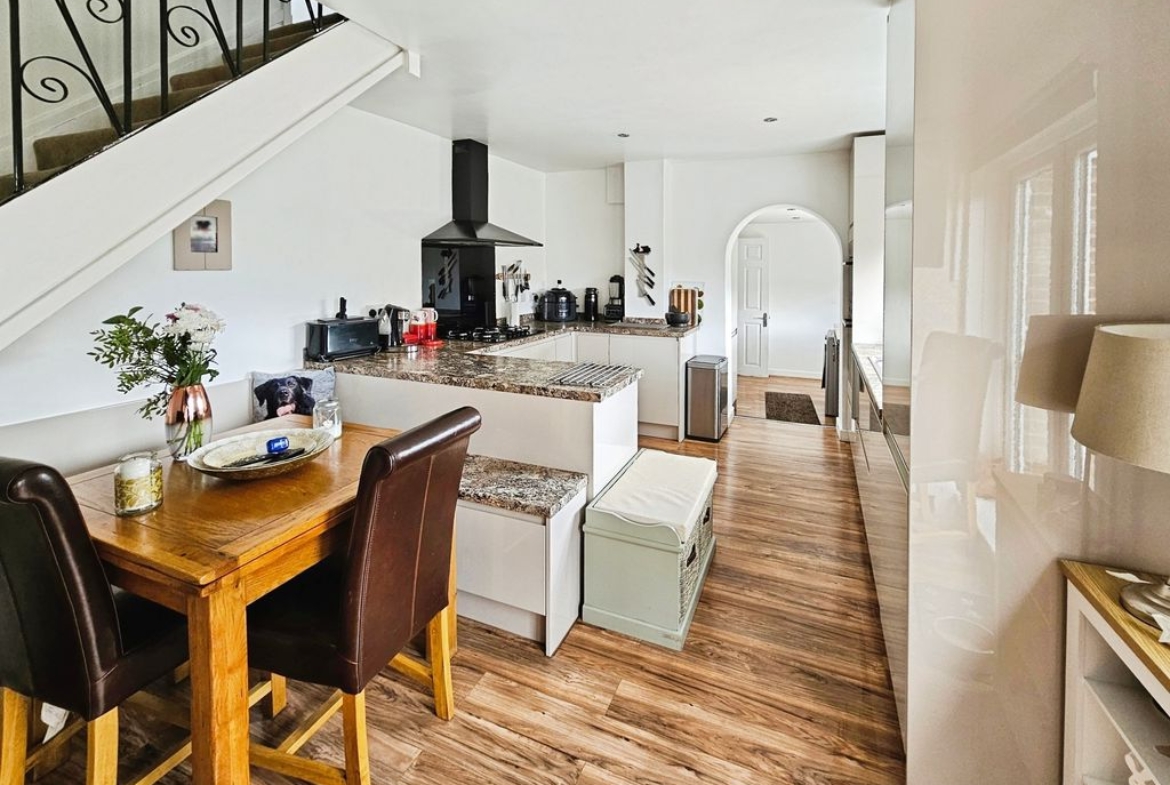 The heart of the home is the open-plan kitchen/diner, designed for both everyday living and entertaining, with double doors leading directly to the garden. A separate utility area, along with access to the garage and rear garden, completes the ground floor.