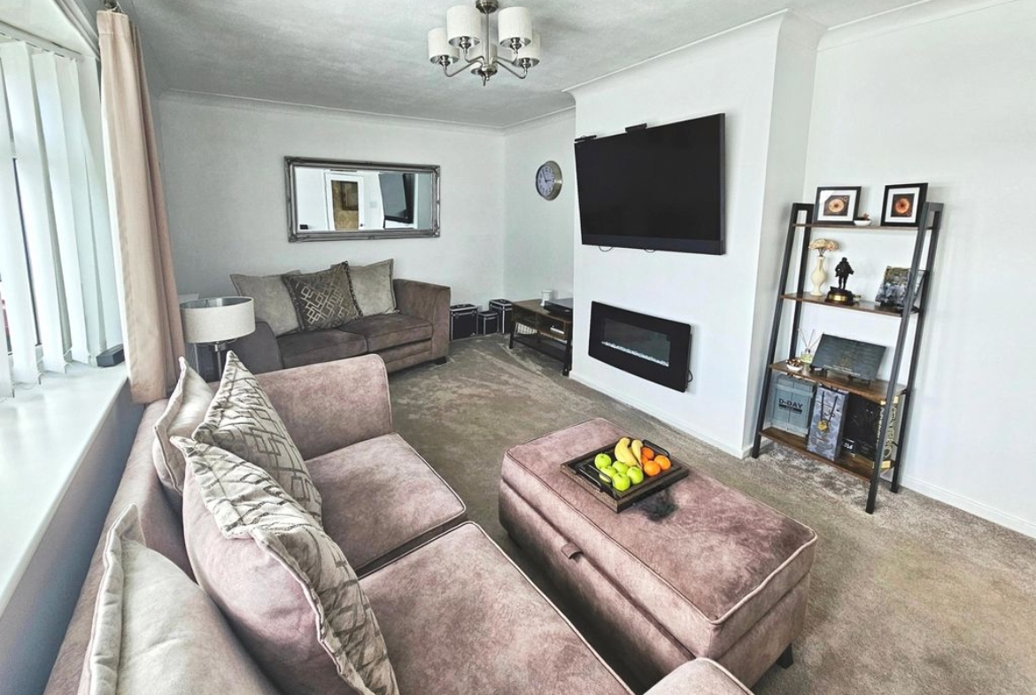 Double glazed window to front, two single radiators, electric fire, television point, coving to ceiling.
