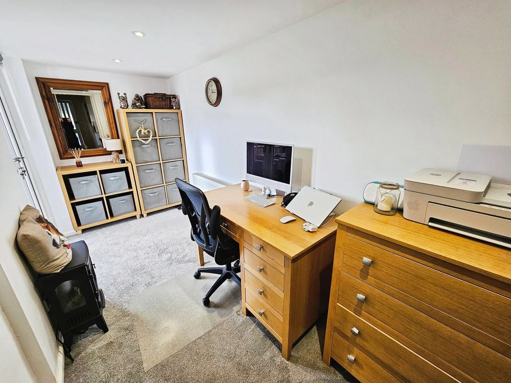 Upon entering, you are welcomed by a generous porch leading into a bright hallway, complete with a convenient downstairs cloakroom. To the front of the property, a spacious lounge with a bay window provides a relaxing and light-filled living space. To the rear, a versatile second reception room—currently used as a study—features double French doors opening onto a decking area, ideal for indoor-outdoor living.