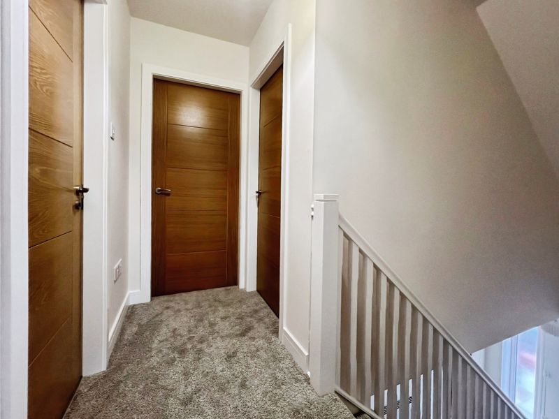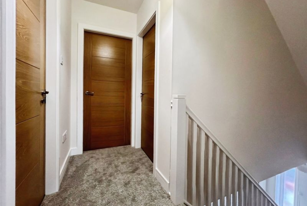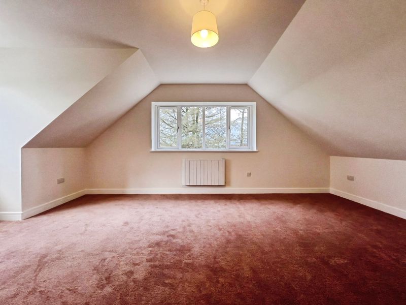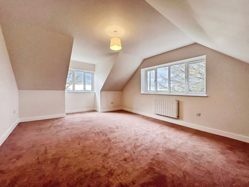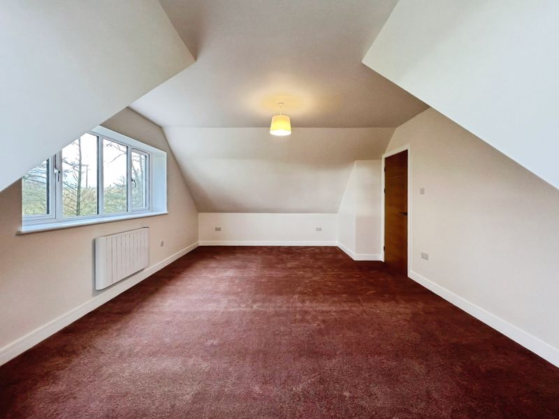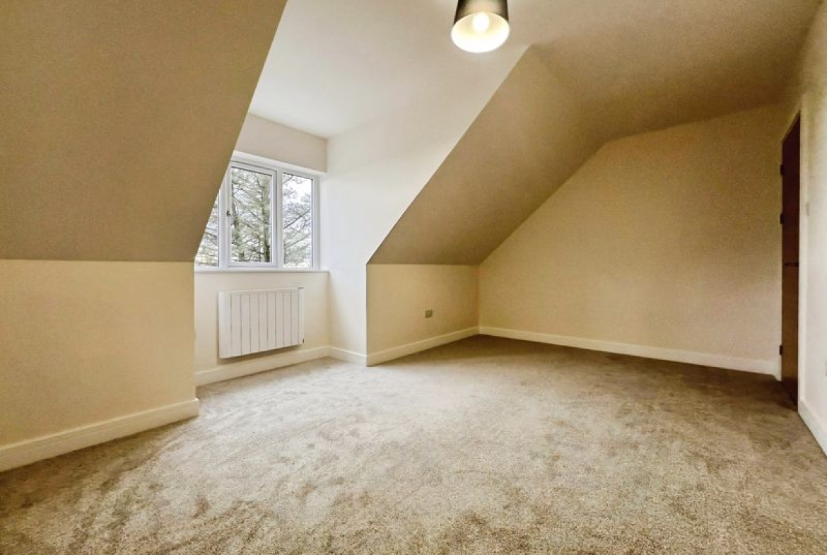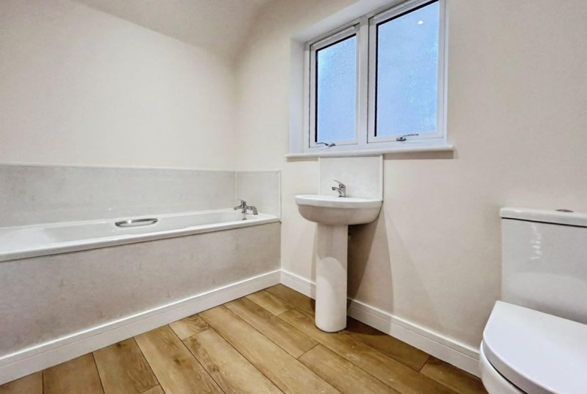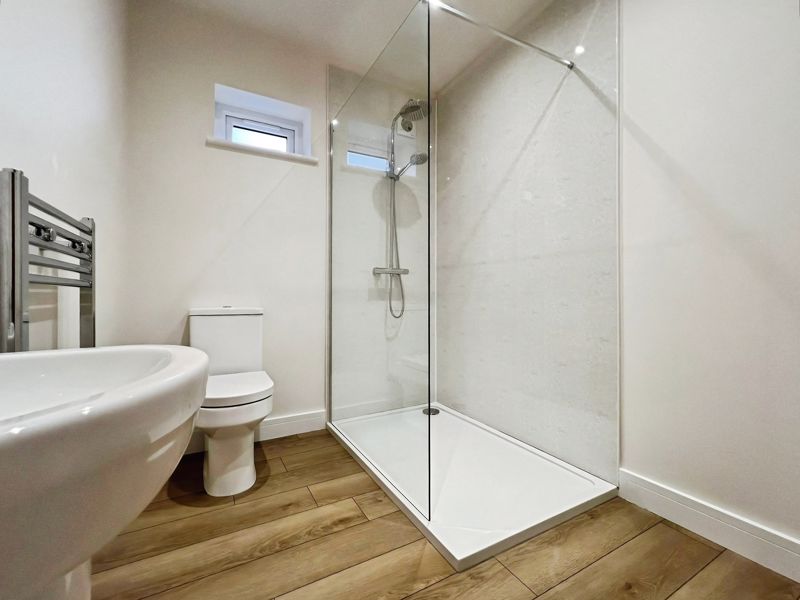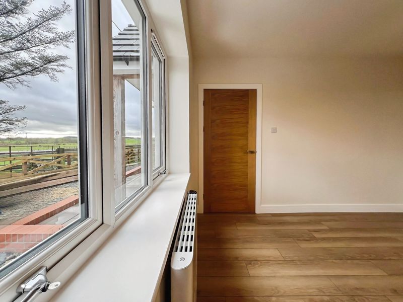 Accommodation includes three bedrooms: a spacious double master that benefits from dual aspect windows and open views, a second double bedroom, and a comfortable single. The family bathroom is finished with a heated towel rail and a quality bath, while the ground floor includes a shower room equipped with a rain shower and heated towel rail.