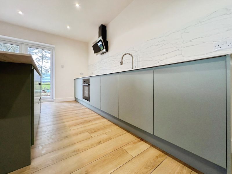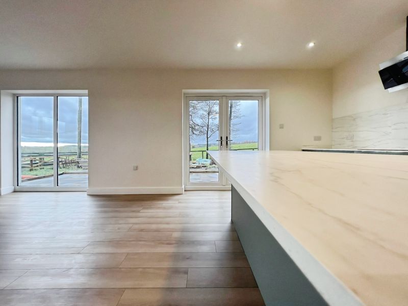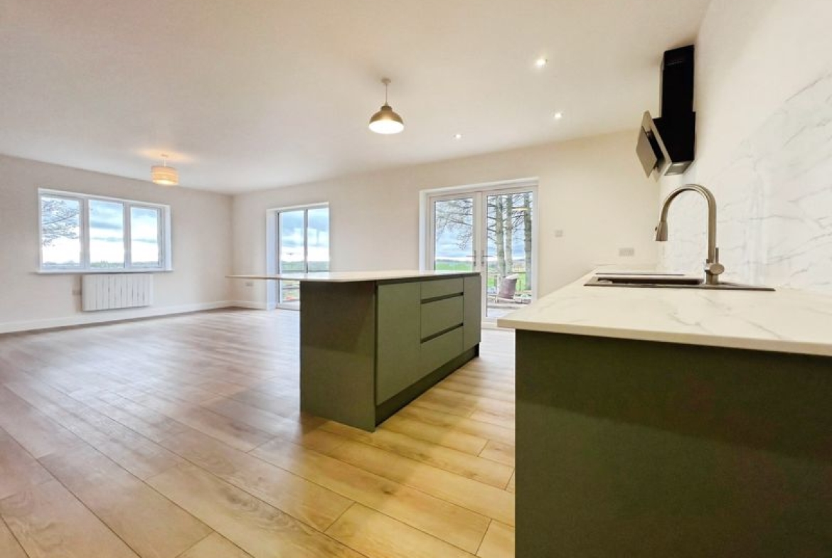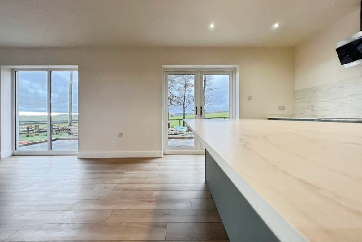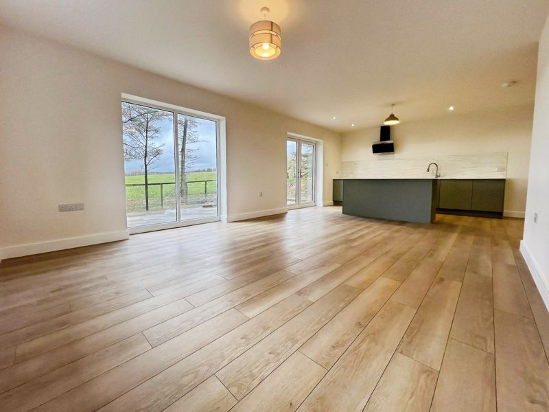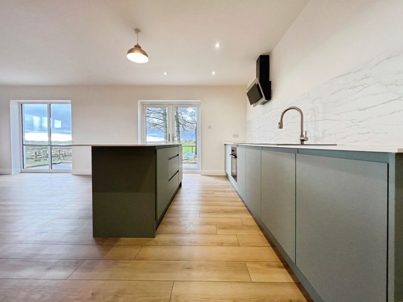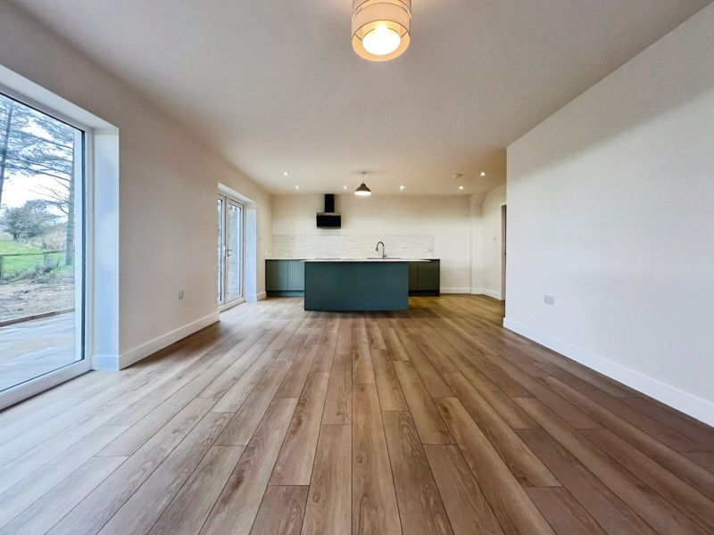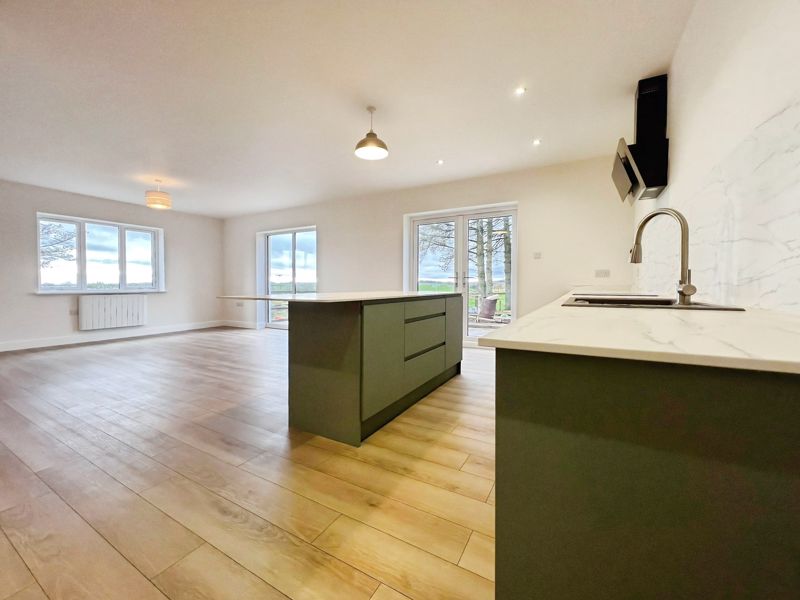 The home offers an open plan living arrangement, enhancing space and natural light. The kitchen, located at the heart of the property, features a kitchen island, integrated dishwasher oven and hob, generous utility room, and breakfast area. With direct access to the patio, it seamlessly connects to the living space, making it a practical area for both relaxation and family gatherings.