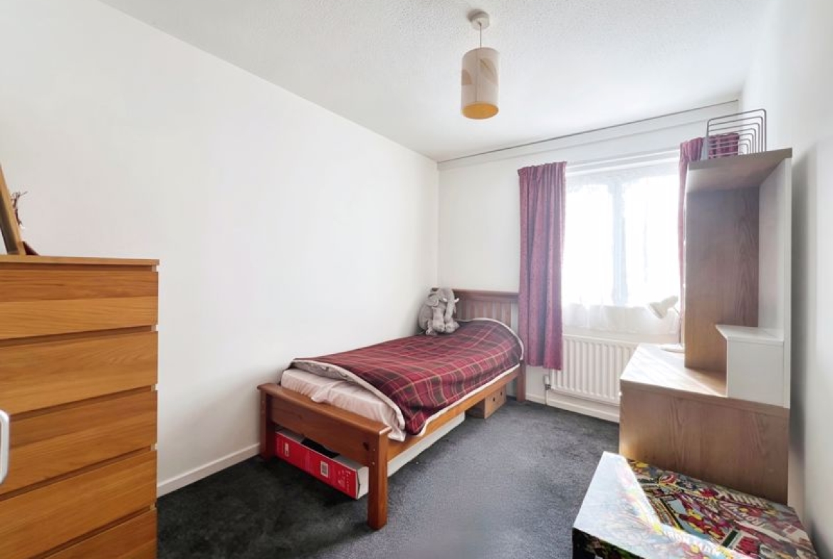 The master bedroom boasts built-in wardrobes, offering ample storage space, while the second bedroom includes a convenient built-in cupboard. The flat also benefits from a well-maintained bathroom.