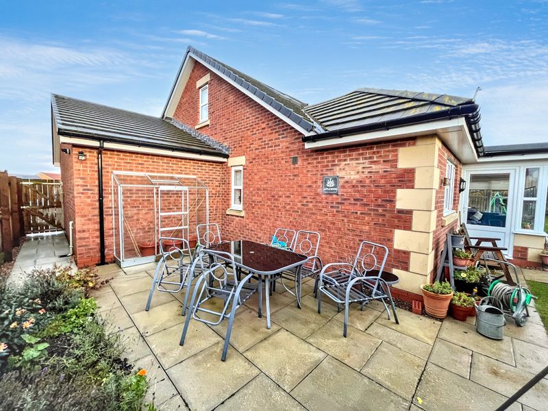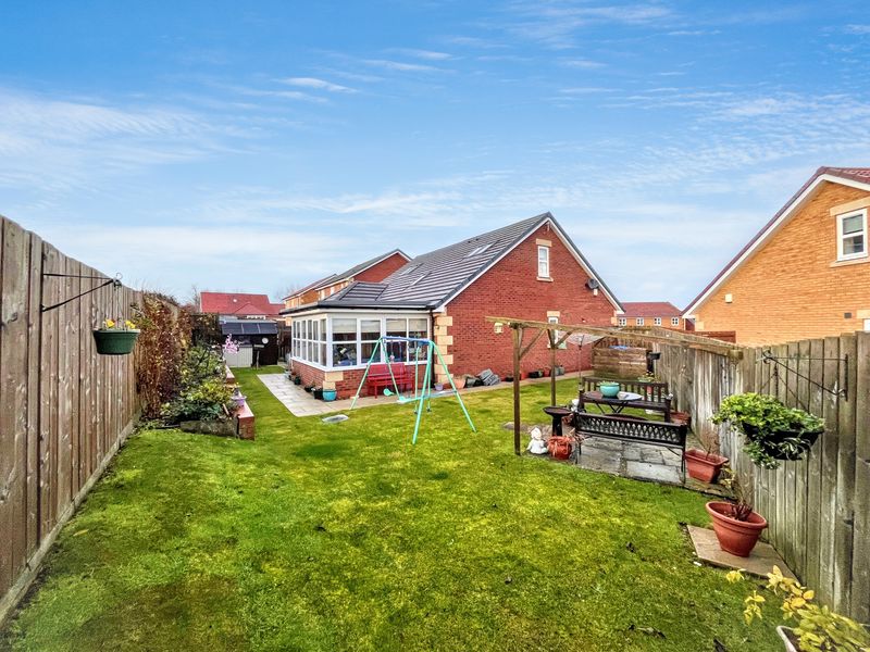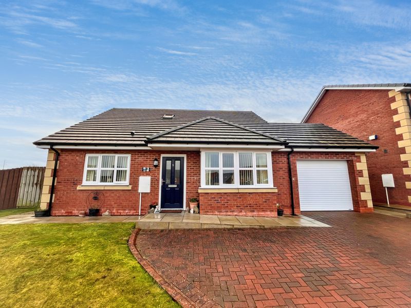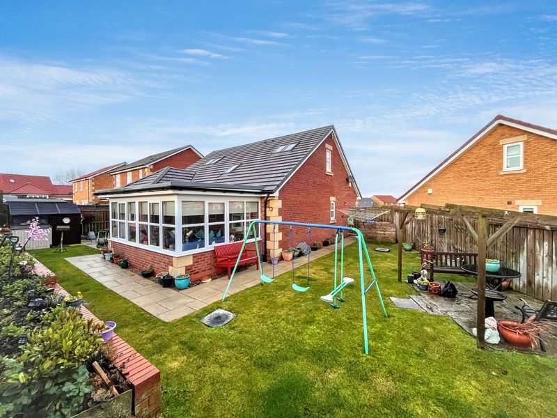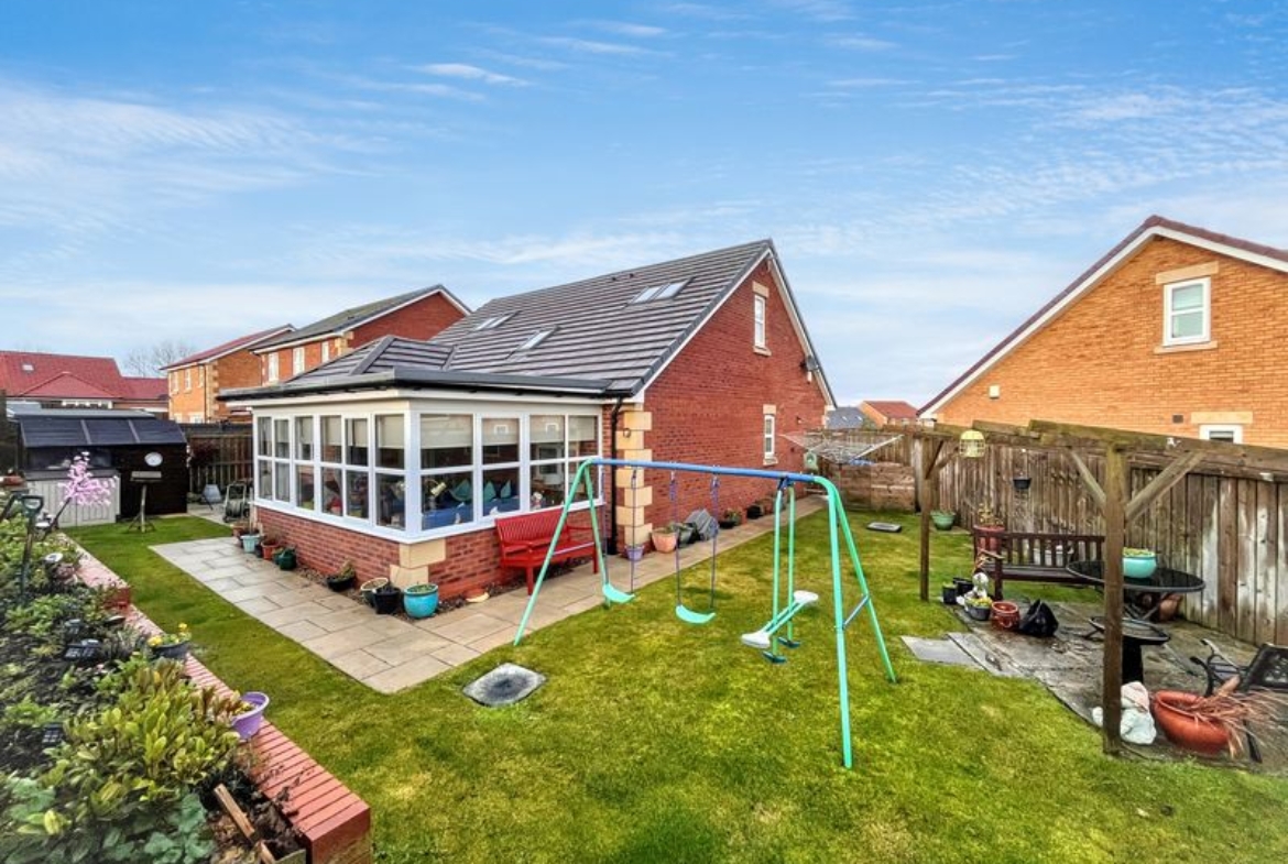 A thoughtfully designed detached house situated with a south-west facing rear garden in a popular modern development in Belford, Northumberland. The accommodation provides a flexible layout suited to a range of buyers including families and retirees. Neutrally decorated throughout, the property includes four well-proportioned bedrooms, arranged with two attic style bedrooms upstairs and two bedrooms on the ground floor, allowing for versatile living solutions. The ground floor master bedroom includes an en-suite. Both of the first floor bedrooms benefit from built-in wardrobes in the eaves for convenient storage.