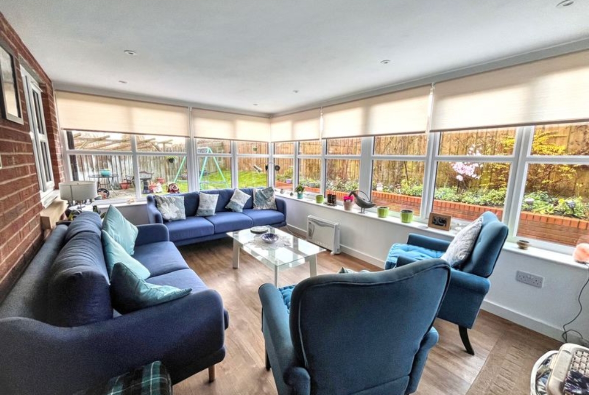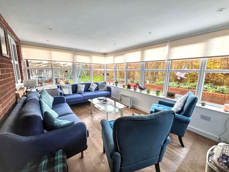 UPVC double-glazed windows to rear and side | Radiator | Laminate floor | Ceiling downlights | UPVC double-glazed French doors to sunroom
