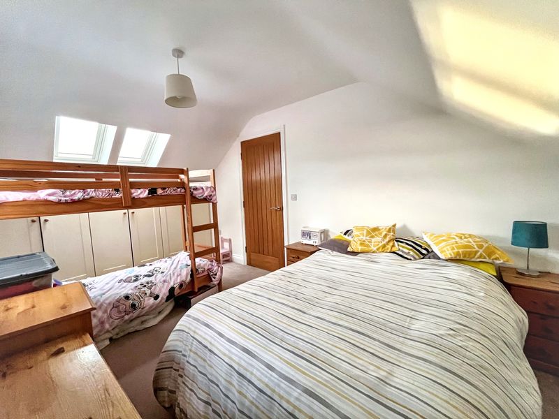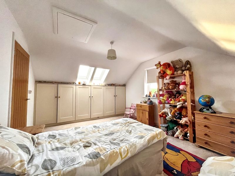 Double-glazed Velux windows | UPVC double-glazed window to side | Radiator | Cupboards fitted into the eaves with hanging rails providing wardrobe space |