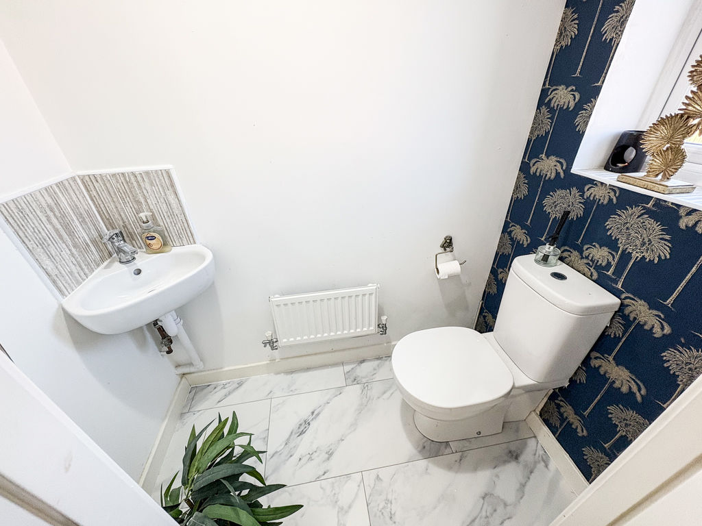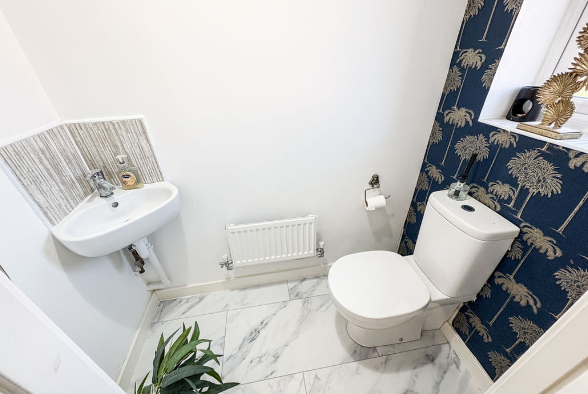 DOWNSTAIRS CLOAKS/W.C: low level WC, hand basin, double glazed window and single radiator.